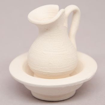 Terrakotta Waschschüssel mit Krug, weiß glasiert